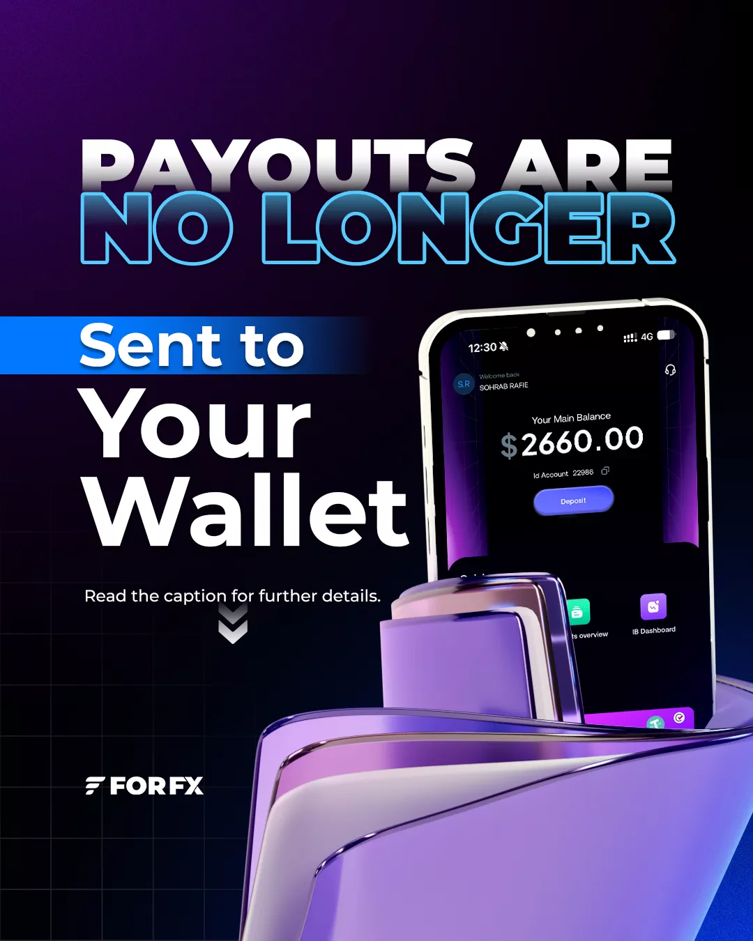 طراحی گرافیکی و انتخاب طرح ها: در این مرحله، از طراحی های متناسب با هویت برند forfx استفاده شد تا پیام های برند به شکل ساده و موثر منتقل شوند. انتخاب رنگ های حرفه ای و متناسب با فضای مالی و تریدینگ به تصاویر ساخته شده انرژی و شفافیت بخشید.